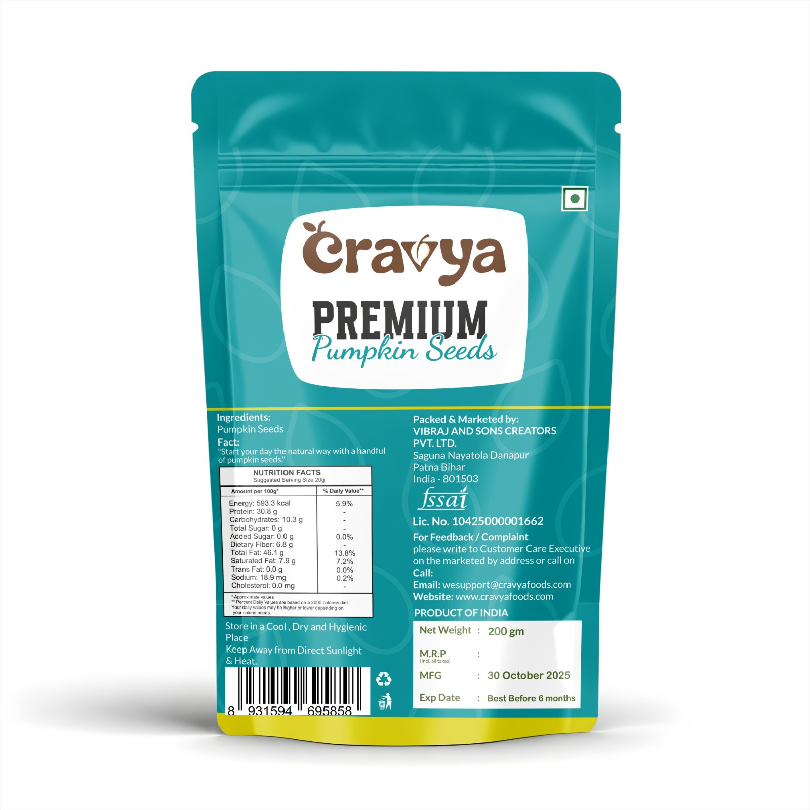 Refunds We will notify you once we’ve received and inspected your return, and let you know if the refund was approved or not. If approved, you’ll be automatically refunded on your original payment method within 10 business days. Please remember it can take some time for your bank or credit card company to process and post the refund too. If more than 15 business days have passed since we’ve approved your return, please contact us at wesupport@cravya.com.. Personal Information Vibraj And Sons Creators Private Limited is the licensed owner of the brand Cravya. Cravya respects your privacy. Services overview As part of the registration process on the Site, Cravya may collect the following personally identifiable information about you: Name including first and last name, alternate email address, mobile phone number and contact details, postal code, demographic profile (like your age, gender, occupation, education, address etc.) and information about the pages on the site you visit/access, the links you click on the site, the number of times you access the page and any such browsing information. Eligibility Services of the Site would be available to only select geographies in India. Persons who are “incompetent to contract” within the meaning of the Indian Contract Act, 1872 including un-discharged insolvents etc. are not eligible to use the Site. If you are a minor i.e. under the age of 18 years but at least 13 years of age you may use the Site only under the supervision of a parent or legal guardian who agrees to be bound by these Terms of Use. If your age is below 18 years your parents or legal guardians can transact on behalf of you if they are registered users. You are prohibited from purchasing any material which is for adult consumption and the sale of which to minors is prohibited. License & Site access Cravya grants you a limited sub-license to access and make personal use of this site and not to download (other than page caching) or modify it, or any portion of it, except with the express written consent of Cravya. This license does not include any resale or commercial use of this site or its contents; any collection and use of any product listings, descriptions, or prices; any derivative use of this site or its contents; any downloading or copying of account information for the benefit of another merchant; or any use of data mining, robots, or similar data gathering and extraction tools. This site or any portion of this site may not be reproduced, duplicated, copied, sold, resold, visited, or otherwise exploited for any commercial purpose without express written consent of Cravya. You may not frame or utilize framing techniques to enclose any trademark, logo, or other proprietary information (including images, text, page layout, or form) of the Site or of Cravya and its affiliates without express written consent. You may not use any meta tags or any other “hidden text” utilizing the Site’s or Cravya’s name or trademarks without the express written consent of Cravya. Any unauthorized use terminates the permission or license granted by Cravya. Account & Registration Obligations All shoppers have to register and login for placing orders on the Site. You have to keep your account and registration details current and correct for communications related to your purchases from the site. By agreeing to the terms and conditions, the shopper agrees to receive promotional communication and newsletters upon registration. The customer can opt-out either by unsubscribing in “My Account” or by contacting the customer service. Pricing All the products listed on the Site will be sold at MRP unless otherwise specified. The prices mentioned at the time of ordering will be the prices charged on the date of the delivery. Although prices of most of the products do not fluctuate on a daily basis. Return & Refunds We have a “7-day return and refund policy” which entitles all our members to return the product at the time of delivery if due to some reason they are not satisfied with the quality, freshness or quantity of the product. We will take the returned product back with us and issue a refund to you by way of a discount coupon of same amount that can be accrued on any product on our website. You Agree and Confirm That in the event that a non-delivery occurs on account of a mistake by you (i.e. wrong name or address or any other wrong information) any extra cost incurred by Cravya for redelivery shall be claimed from you. That you will use the services provided by the Site, its affiliates, consultants and contracted companies, for lawful purposes only and comply with all applicable laws and regulations while using and transacting on the Site. You will provide authentic and true information in all instances where such information is requested of you. Cravya reserves the right to confirm and validate the information and other details provided by you at any point in time. If upon confirmation your details are found not to be true (wholly or partly), it has the right in its sole discretion to reject the registration and debar you from using the Services and / or other affiliated websites without prior intimation whatsoever. That you are accessing the services available on this Site and transacting at your sole risk and are using your best and prudent judgment before entering into any transaction through this Site. That the address at which delivery of the product ordered by you is to be made will be correct and proper in all respects. That before placing an order you will check the product description carefully. By placing an order for a product you agree to be bound by the conditions of sale included in the item’s description. You may not use the Site for any of the following purposes: Disseminating any unlawful, harassing, libelous, abusive, threatening, harmful, vulgar, obscene, or otherwise objectionable material. Transmitting material that encourages conduct that constitutes 